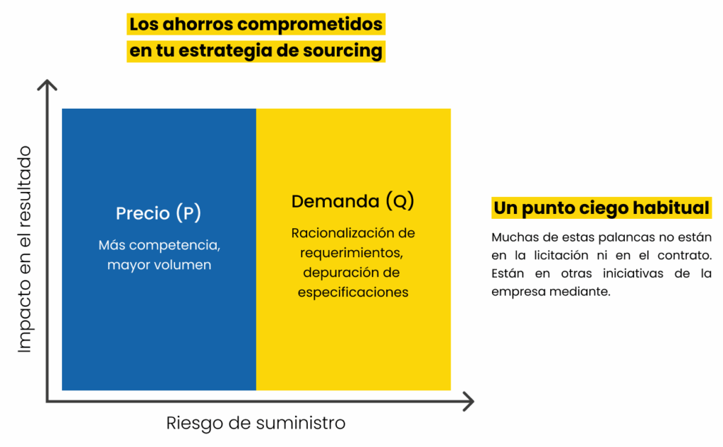 El posicionamiento de una categoría en la Matriz de Kraljic puede ayudarte a definir estrategias de ahorro más efectivas y sostenibles, identificando las palancas adecuadas a activar, ya sea sobre el Precio (P) o la Cantidad (Q).